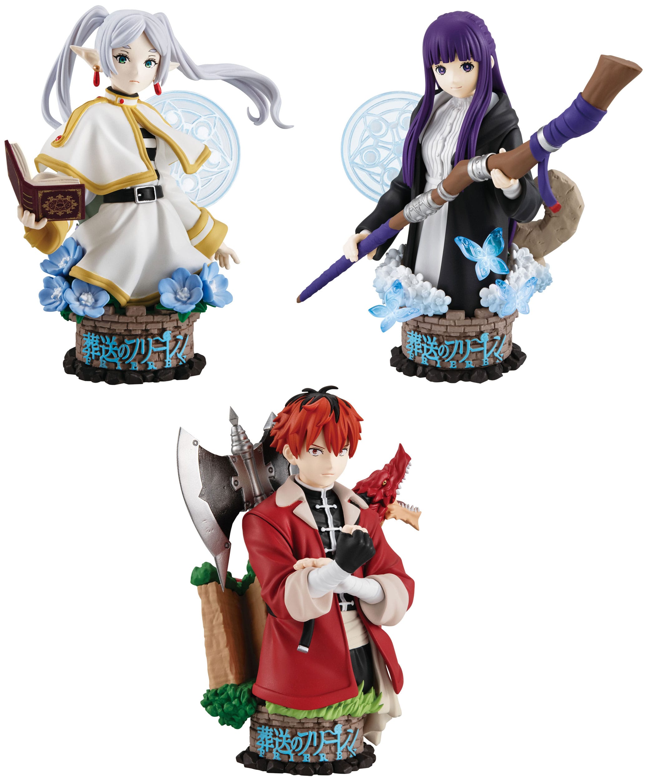 Drei hübsche, etwa 9cm große Puchirama EX-Figuren von Frieren, Fern und Stark aus "Frieren: Beyond Journey's End".