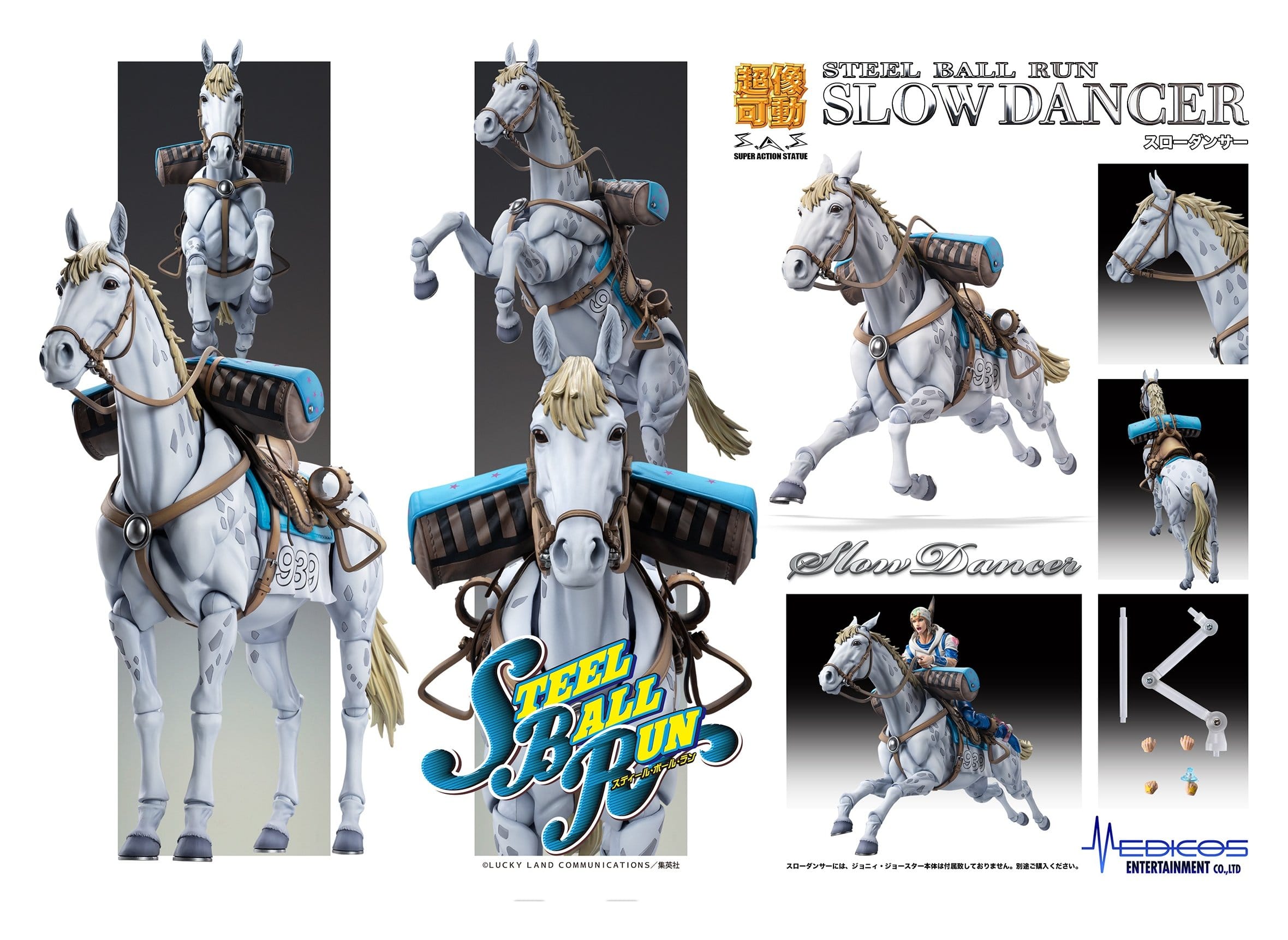 Eine bewegliche, etwa 21cm große Figur aus der "Super Action Statue"-Reihe von Slow Dancer aus "JoJo's Bizarre Adventure Part7: Steel Ball Run". Wird inkl. Zubehör geliefert.