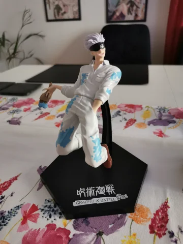 Eine etwa 14cm große Graffiti×Battle Figur von Satoru Gojō aus "Jujutsu Kaisen".